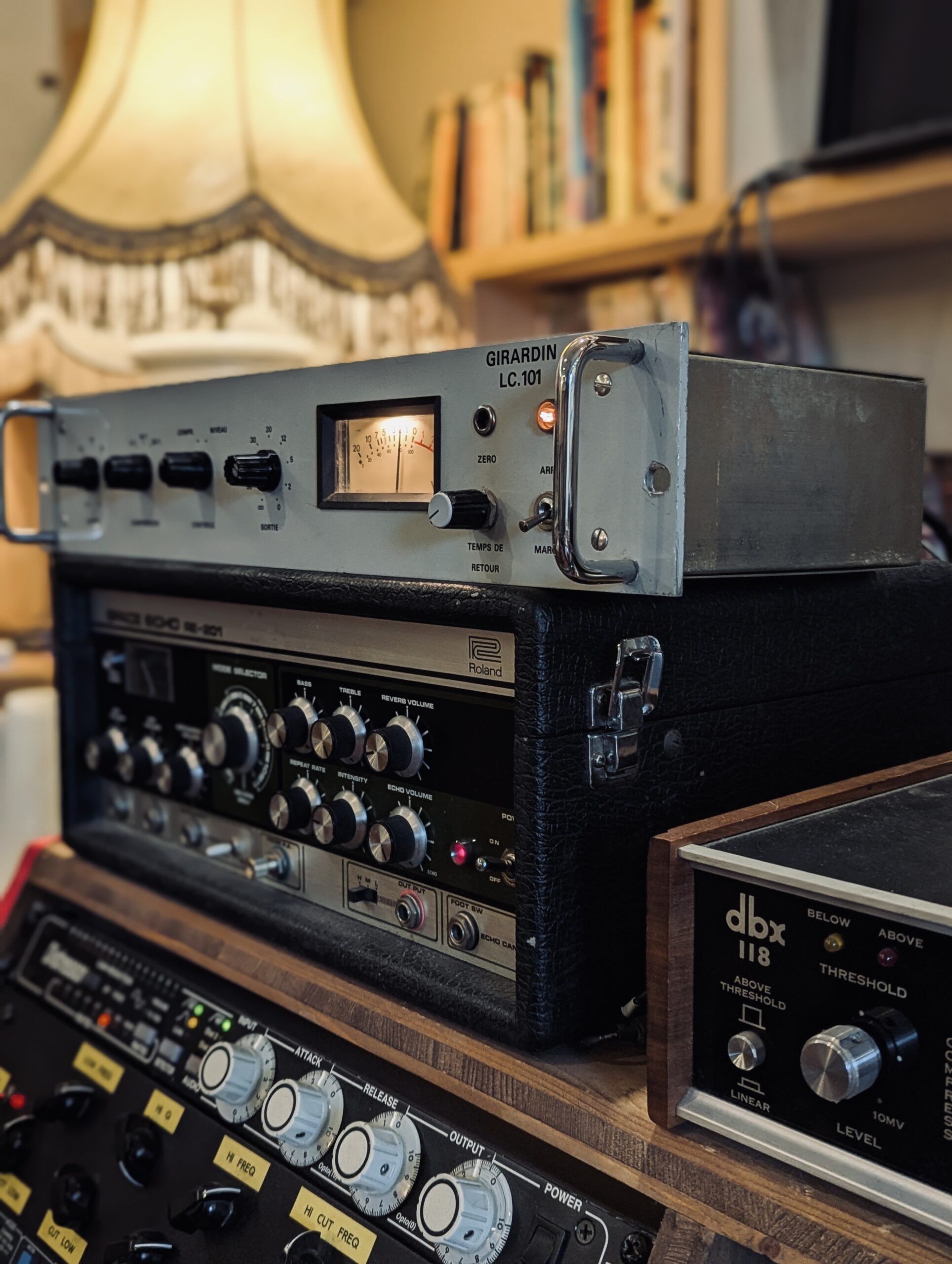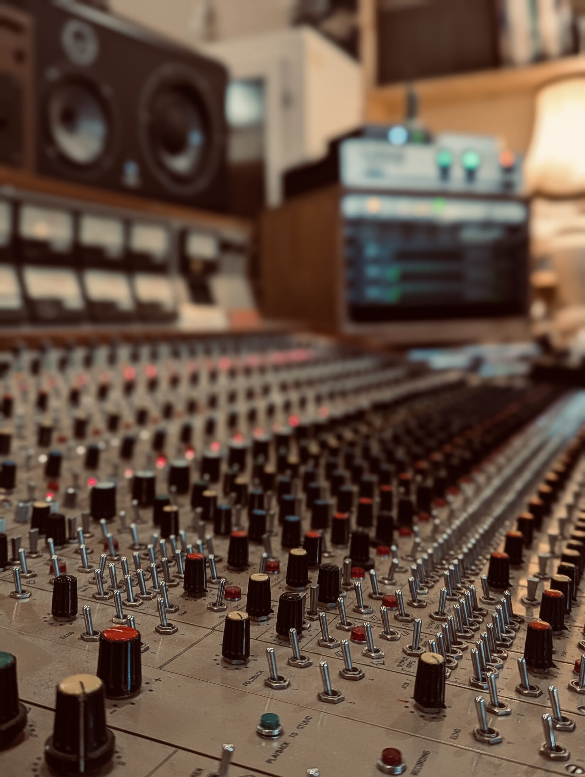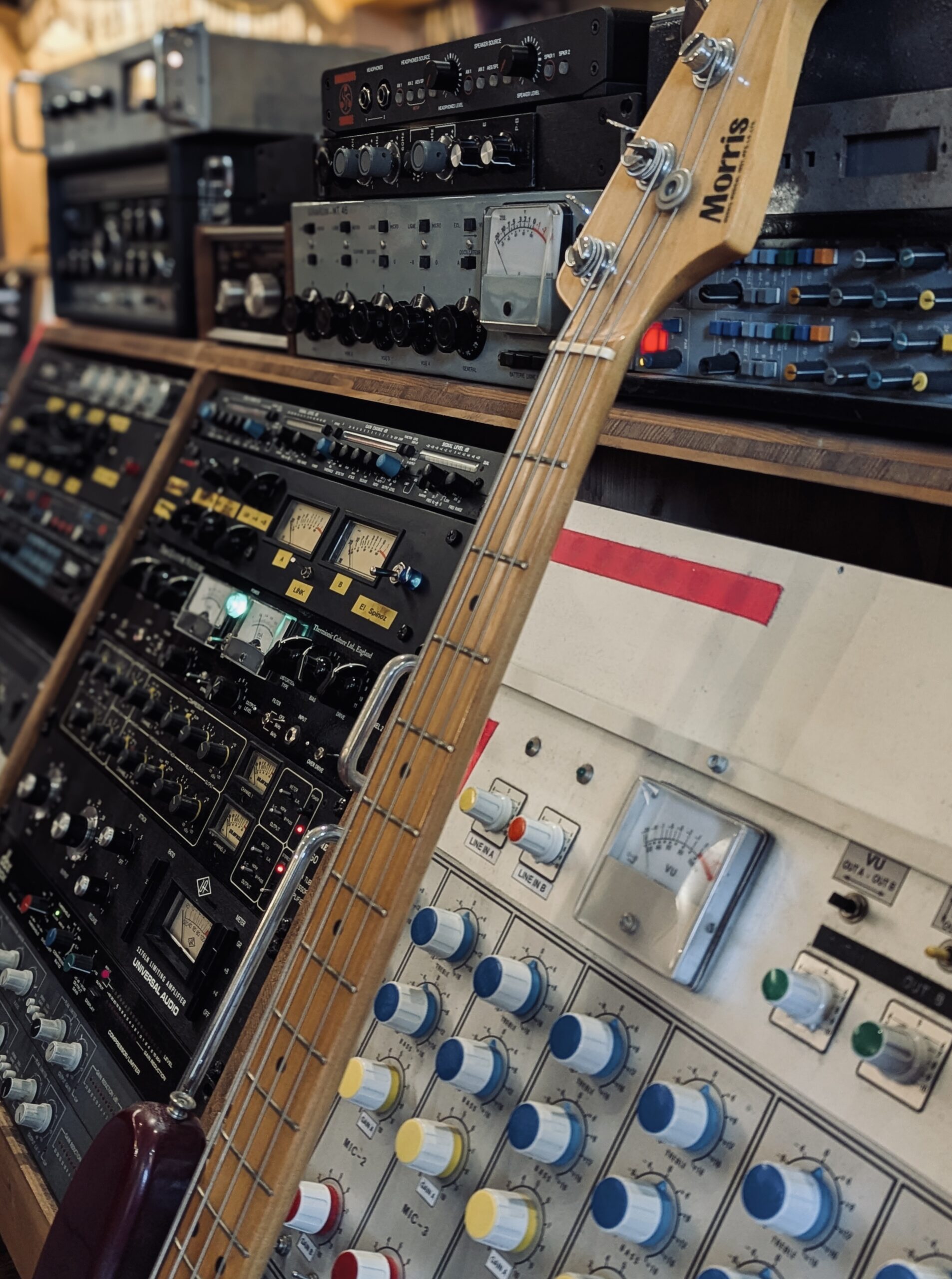 La régie est construite autour de notre console CADAC série G avec tous ces beaux transfos MARINAIR, de nos convertisseurs METRIC HALO et d’un large choix de périphérique externe ( préampli, compresseur, EQ..) et nos 2 magnétos à bande ( 24 et 2 pistes ) qui donnent au studio tous les outils nécessaire à vos réalisations et productions de disque.